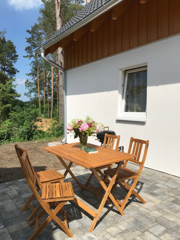 Außen: Kleine Sonnenterrasse mit 4 Sitzplätzen und Grill